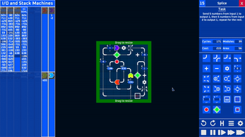 Push and pop your way through Stack Machines - an open-ended puzzle programming game. Use the stack data structure in the form of 4 stack machines moving according to the modules(instructions) placed on a grid to read, transform and output different input sequences. Optimize your solutions for size, module count, speed and cost-effectiveness.